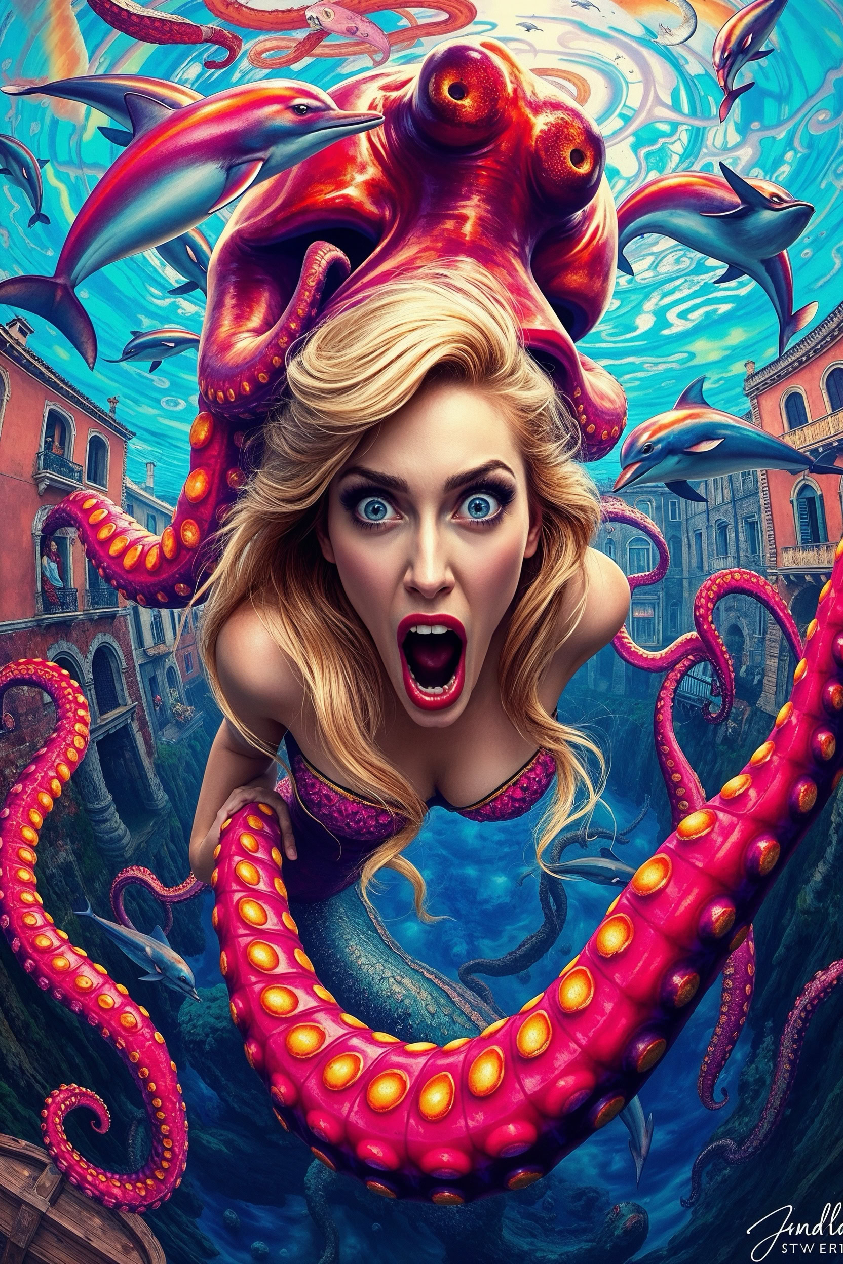 Die Bilder auf diesen Seiten wurden ausnahmslos mit KI-Bildgeneratoren, also mithilfe von künstlicher Intelligenz generiert. Eventuelle Ähnlichkeiten mit lebenden oder toten Personen haben sich daher nur rein generativ ergeben.